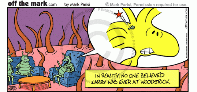 Flea at Woodstock Flea claims to have been to woodstock the bird but no one believes him.