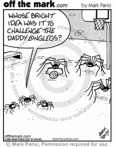 Spiders lose at basketball to daddy longlegs.