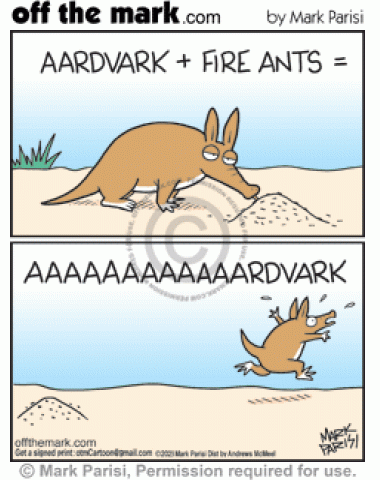 Aardvark + Fire Ants = Painful Sting AAAArdvark