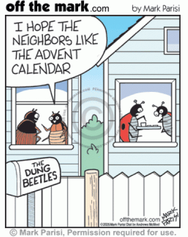 Dung Beetle Poo Advent Calendar Gift Shocks Bug Neighbors Dung beetles hope ladybugs enjoy advent calendar but gross poop treats unexpected Christmas surprise.