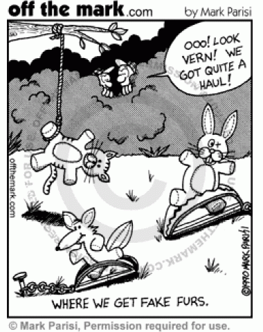 Fake Furs Hunters trap stuffed animals for their fake fur.