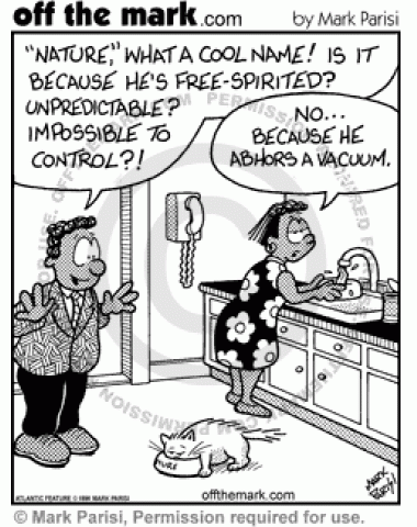 Cat Named Nature A woman names her cat Nature because he abhors a vacuum.
