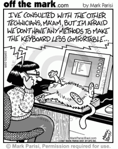Cat Keyboard IT A woman calls IT to find out if there's a way to make her keyboard less comfortable to her cat.