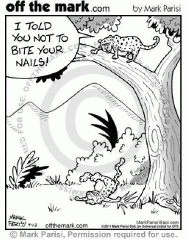 Nail Biting Leopard Nail biting leopard falls from tree because he doesn't have any claws to grip with.