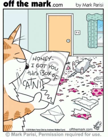 Cat has no control and opens cat nip gift.