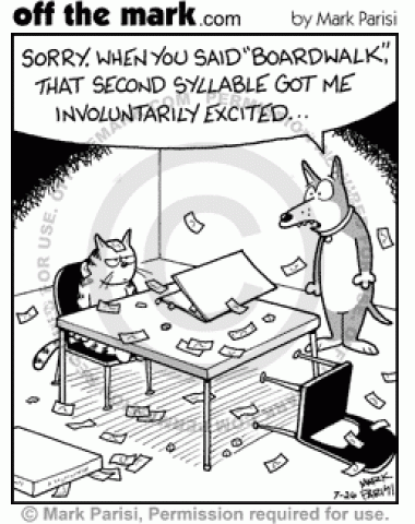 Dog's Monopoly Boardwalk A dog gets excited when he hears the word