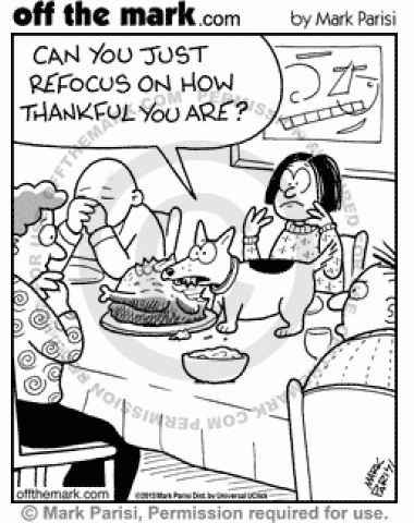 Dog's Thanksgiving Grace A dog tries to eat turkey while a family is saying grace at Thanksgiving.