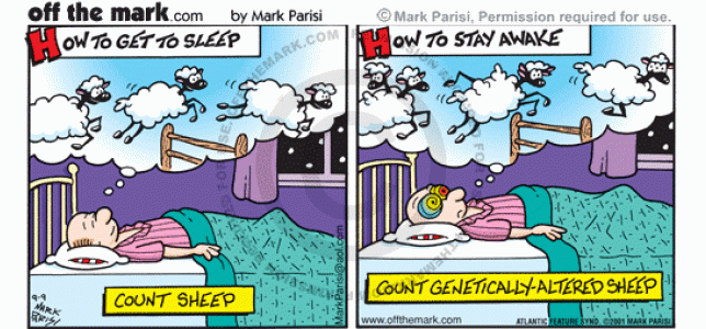 You fall asleep counting sheep, but stay awake counting genetically modified sheep.