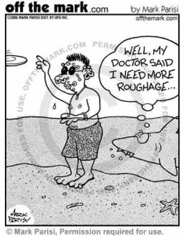 Shark Needs Roughage A doctor recommends that a shark needs more roughage, so it looks for someone with body piercings.