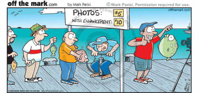Enhanced Fishing Catch Fishermen get photos of fish pumped with air to enhance the appearance of their catch.