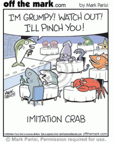 Fish Comedian’s Grouchy Imitation Crab Joke Insulting