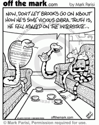 A snake pretends to be a cobra, but really he got run over on the highway.