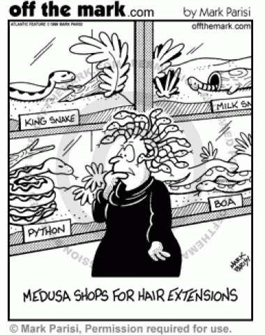 Medusa's Hair Extensions Medusa goes shopping for hair extensions at a pet store.