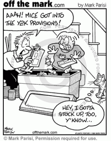 Mice get into a family's Y2K provisions because a cat wants to stock up on food too.