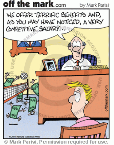 A company offers a competitive salary of money that plays volleyball.
