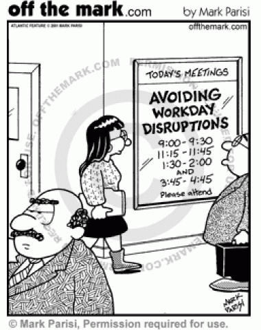 Avoiding Workday Disruptions Meeting A company has meetings all day to teach employees how to avoid workday disruptions.