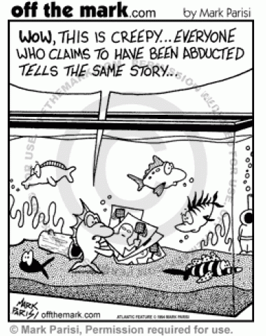 Fish in a tank realize they've all been abducted.