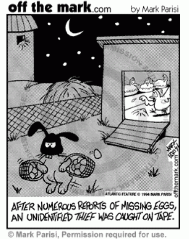 Easter Bunny Egg Thief A surveillance tape catches the Easter Bunny stealing from a chicken coop.