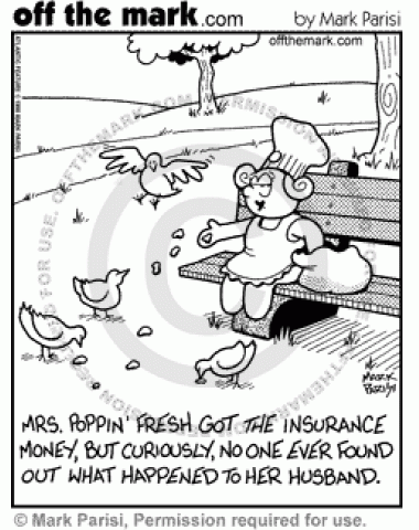 The Pillsbury Dough Boy's wife murders him and feeds his remains to birds.