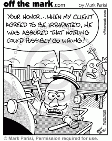 Irradiated Potato Trial A messed-up Mr. Potatohead sues the company that irradiated him.