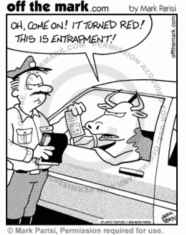 Cow Entrapment A cow getting a traffic ticket claims entrapment.