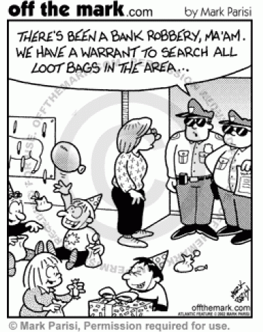 Bank Robbery Goody Bags Police come to a birthday party to search the loot bags.