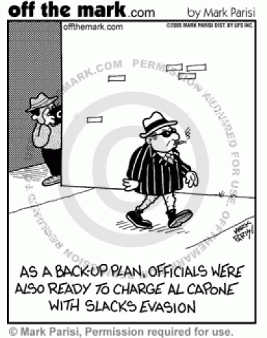 Charging Al Capone The Feds were ready to Charge Al Capone with slacks evasion also.
