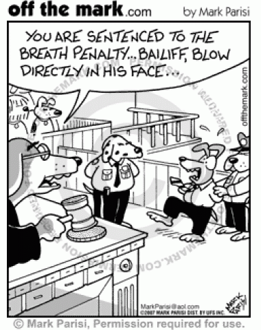 Dog Breath Penalty A dog in court recieves the breath penalty.