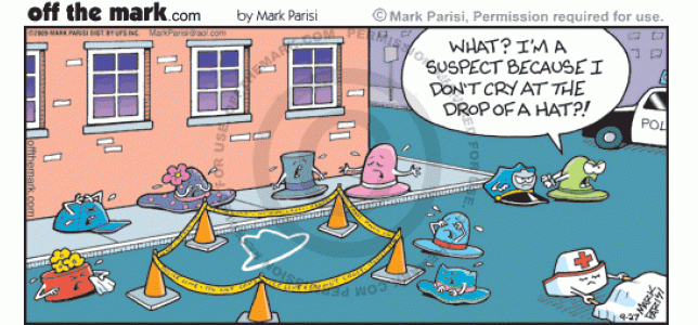 Not Crying At Hat Not crying at the drop of a hat gets hat arrested.