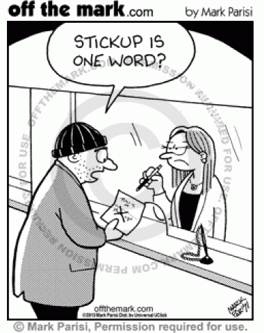 Thief's Bad Spelling A bank teller corrects a robber's note.