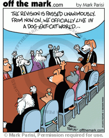 Dog Company Meeting Dogs agree to live in a dog-eat-cat world instead of a dog-eat-dog world.
