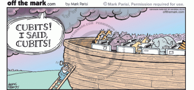 God reprimands Noah for building cubicles on ark, not cubits.</p>
