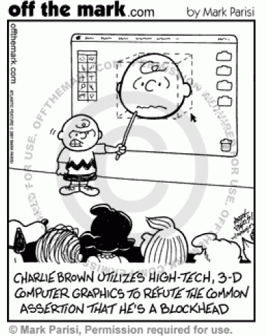 Charlie Brown Computer Blockhead Charlie Brown uses a computer to prove he isn't a blockhead.