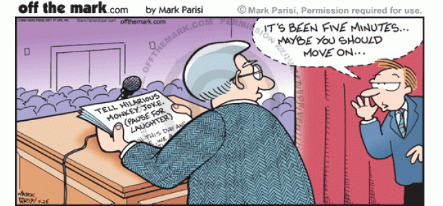 A man pauses too long for laughter after a joke.