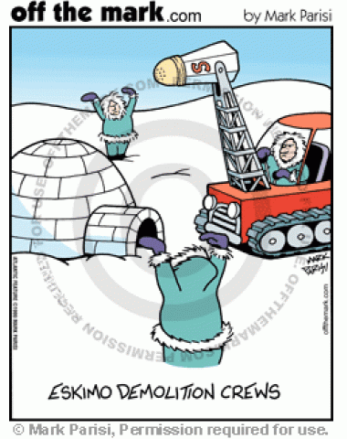 Eskimo Demolition Crews The Inuit demolish their igloos with big salt shakers.