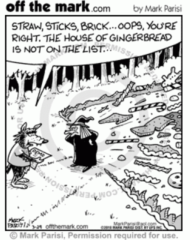 Big Bad Wolf Error Big Bad Wolf makes mistake and blows down gingerbread house.