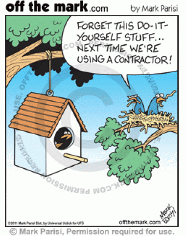 Bird wants to get a contractor to build a house instead of building their own nest.