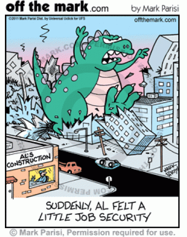 Construction Job Security Al's Construction will have job security rebuilding city after monster's attack.