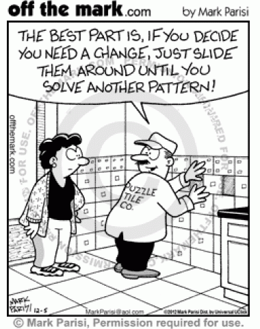 Tile Installer Puzzle Pattern A tile installer puts in tiles that the home owner can slide around into new patterns.