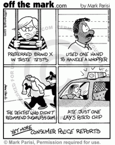 Consumer Police Reports A group of people have committed small gaffes like preferring brand X in taste tests or eating just one Lays potato chip.