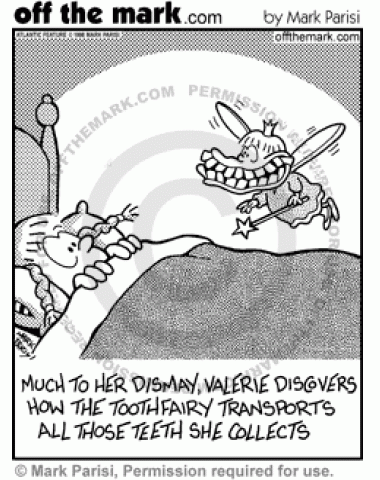 Tooth Fairy's Smile The tooth fairy transports the teeth she collects in her mouth.