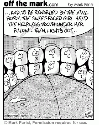 Teeth tell horror stories about the Tooth Fairy.
