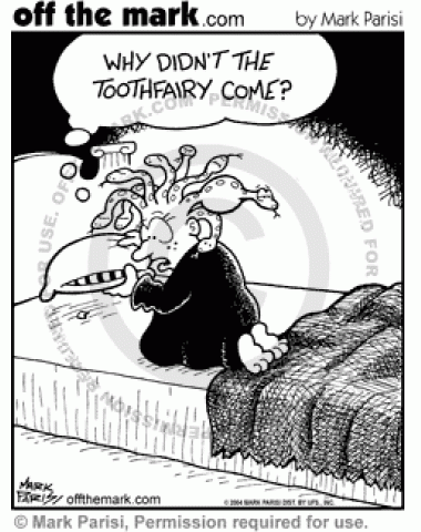 Medusa Tooth Fairy The Tooth Fairy doesn't visit Medusa because one of her snakes was waiting.