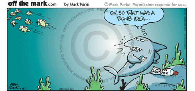 Shark Tooth Whitener A shark uses teeth whitener and then fish are able to see it coming.
