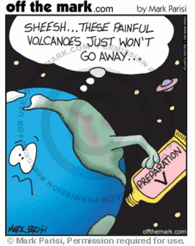 Earth Volcano Medication The Earth is applying Preparation V to his backside to soothe burning because of painful volcanoes that just won't go away.
