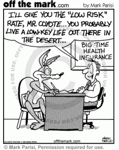 Wile E. Coyote Insurance Wile E. Coyote gets low risk health insurance.