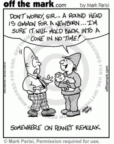 Conehead Baby A baby conehead is born with a round head.
