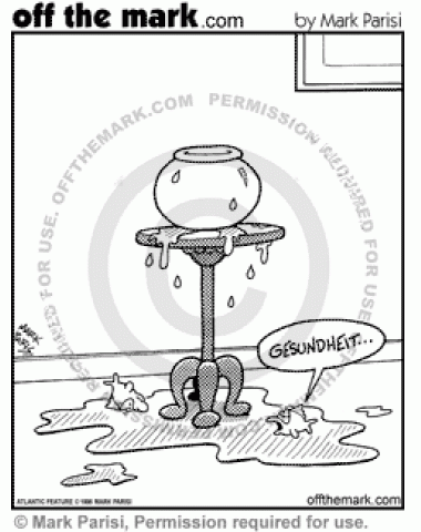 Fish Sneeze A fish sneezes itself and its friend out of a fishbowl.