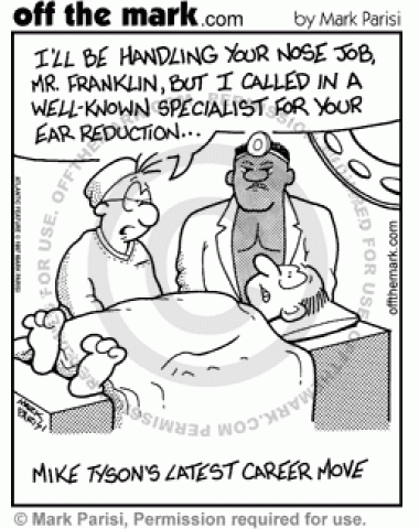 Mike Tyson Ear Reduction Mike Tyson becomes a plastic surgeon because he's an expert at reducing ears.