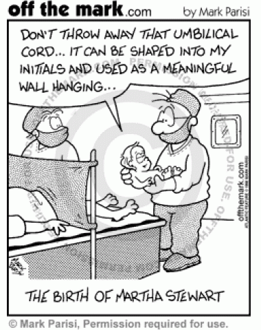 Martha Stewart's Birth Martha Stewart told the doctor who delivered her to save her umbilical cord to make into a meaningful wall hanging.